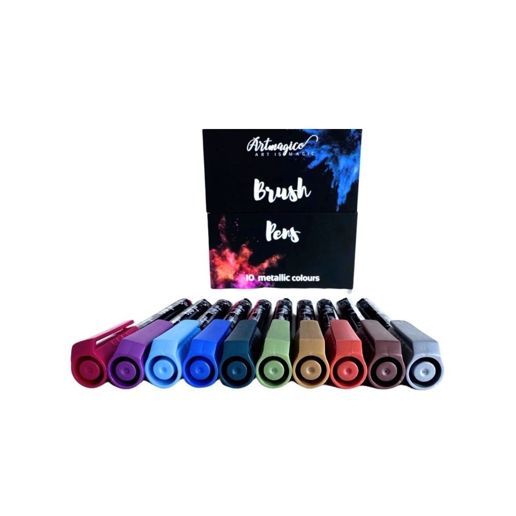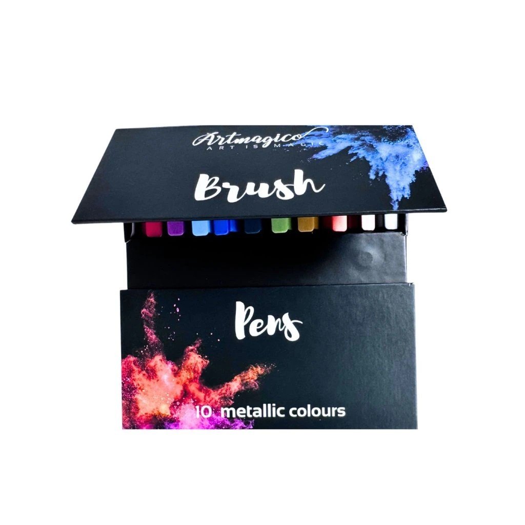 Sada metalických akrylových fixů je navržena pro všechny, kdo chtějí své tvoření posunout o úroveň výš. Díky kvalitnímu akrylovému inkoustu barvy skvěle drží na různých površích a vynikají intenzitou i kryvostí. Pružný štětcový hrot umožňuje plynulé tahy, moderní lettering, stínování i práci s drobnými detaily.