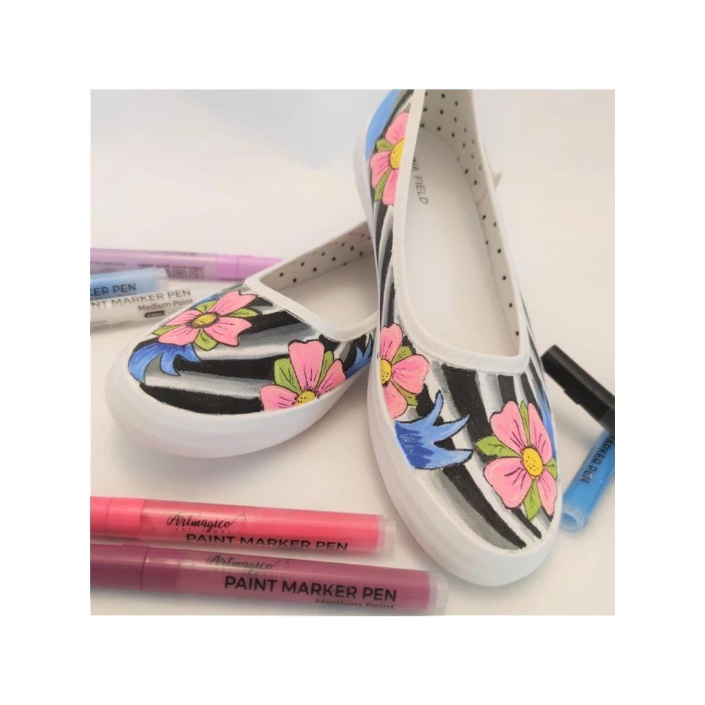 Fixy Artmagico jsou vybaveny středně silným hrotem o šířce 2–3 mm, který zajišťuje plynulý tok barvy bez odstřikování i na nerovném povrchu. Tento typ hrotu je ideální pro zkušené tvůrce i profesionály – využijete jej při malbě na plátno, dekorování různých materiálů, moderní kaligrafii i při vybarvování větších ploch.