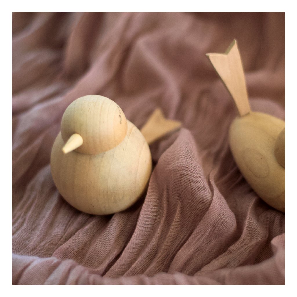 Ptáček je vyroben z přírodního dřeva a není určen pro kontakt s vodou. Uchovávejte ho v suchu a mimo vlhké prostředí. Při manipulaci dávejte pozor, aby nedošlo k odštípnutí nebo poškození tvaru. Po dokončení zdobení je důležité nechat barvy nebo lepidla důkladně zaschnout.