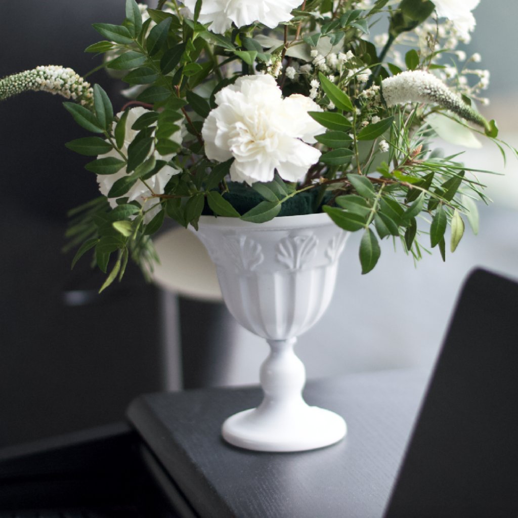 Číši lze naplnit čerstvými, sušenými nebo umělými květinami, svíčkami, kamínky, mušlemi či drobnými dekorativními předměty. Lze ji využít také jako minimalistickou dekoraci bez další výplně.