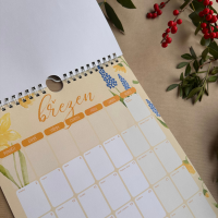 Kalendář je navržen tak, aby byl praktický a zároveň krásný. Jeho formát A4 zajišťuje, že se vejde téměř kamkoliv a nepůsobí rušivě, ale zároveň poskytuje dostatek místa pro základní denní záznamy. Každý měsíc je doplněn ručně malovanými květinovými motivy odrážejícími roční období, což dodává kalendáři příjemnou atmosféru. Jsou v něm vyznačeny svátky, jména i dny volna, takže budete mít vždy přehled o důležitých datech.
